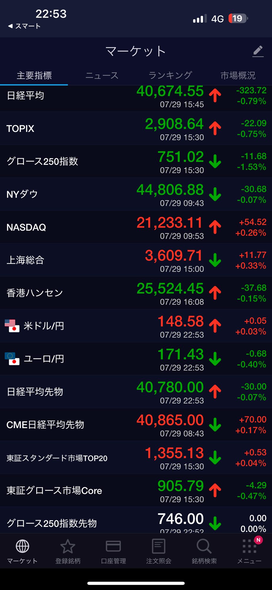 日経平均、新興市場下げでした