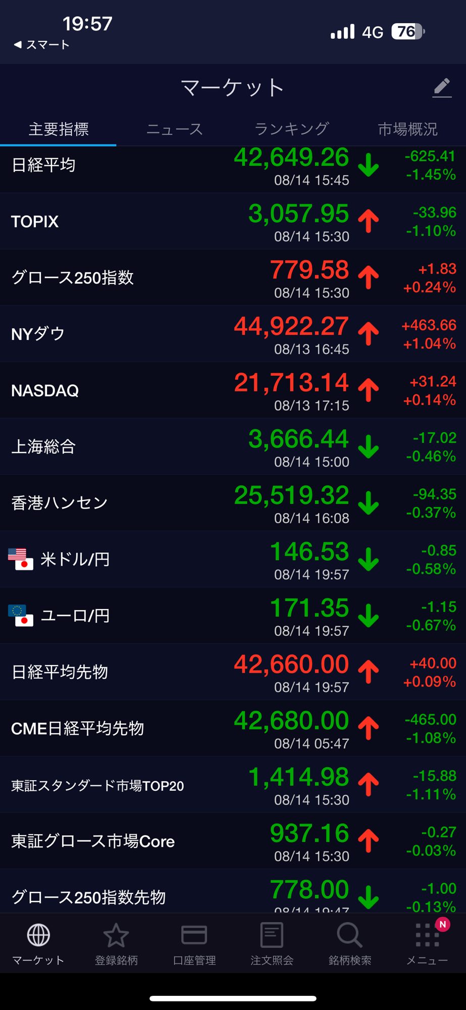 日経平均下げ、新興市場上げでした