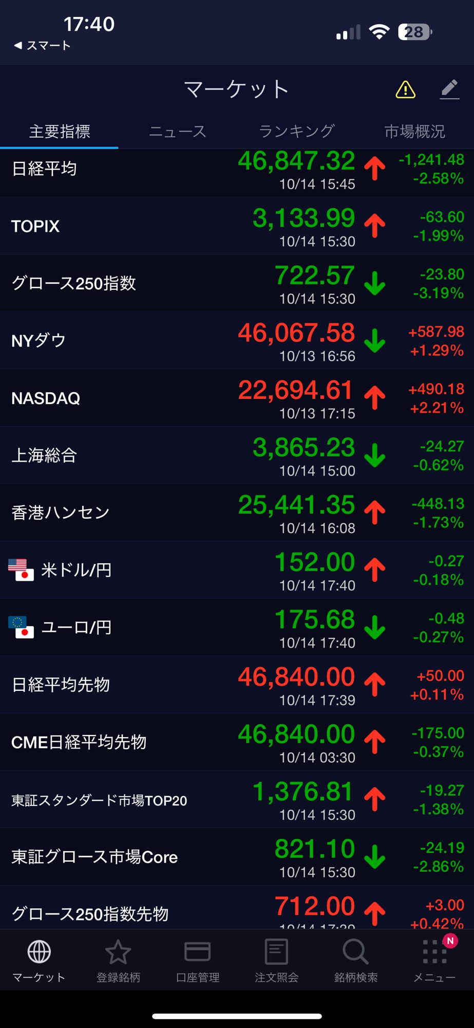 日経平均、新興市場下げでした