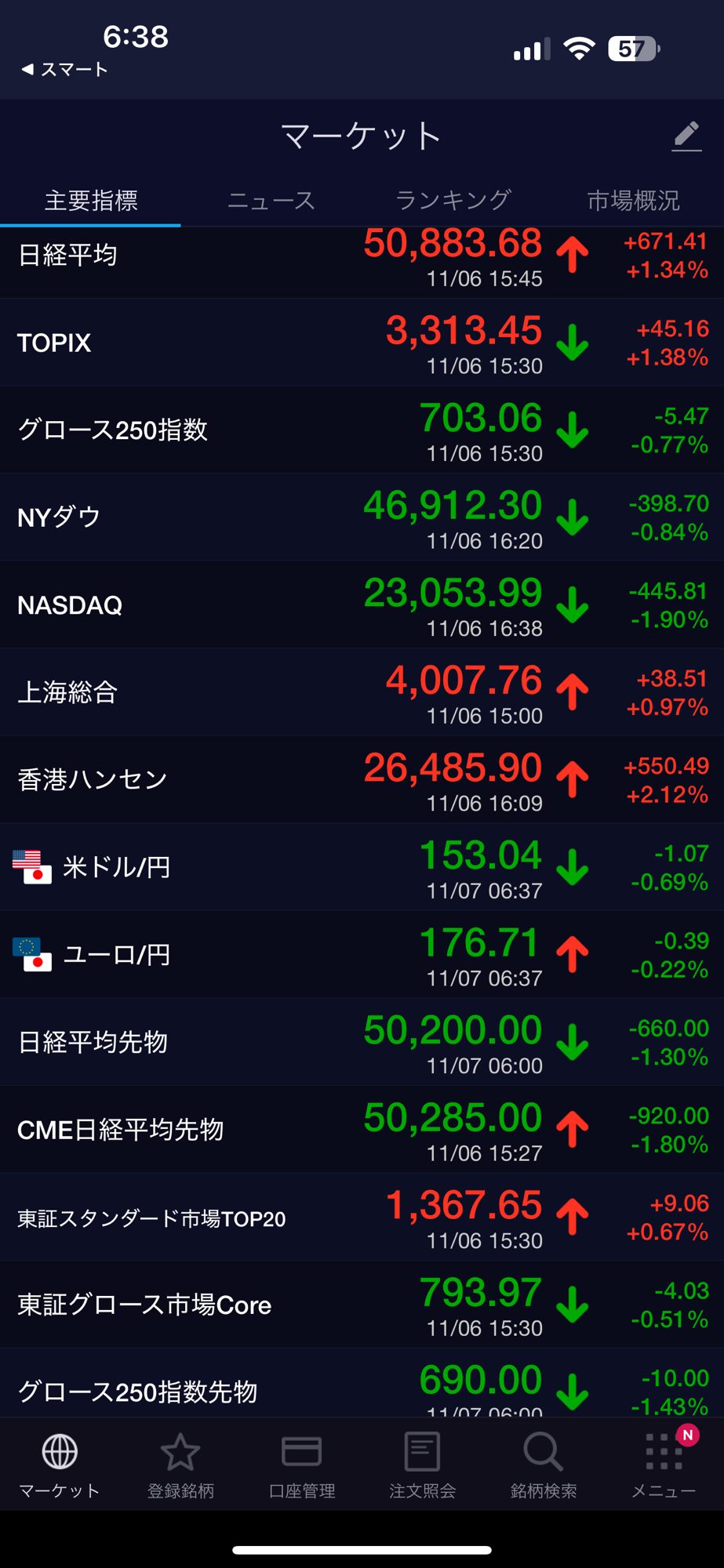 日経平均上げ、新興市場下げでした