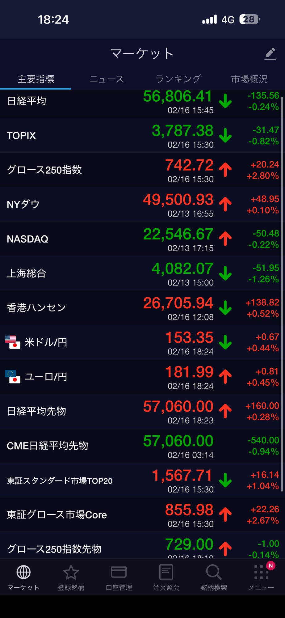 日経平均下げ、新興市場上げでした