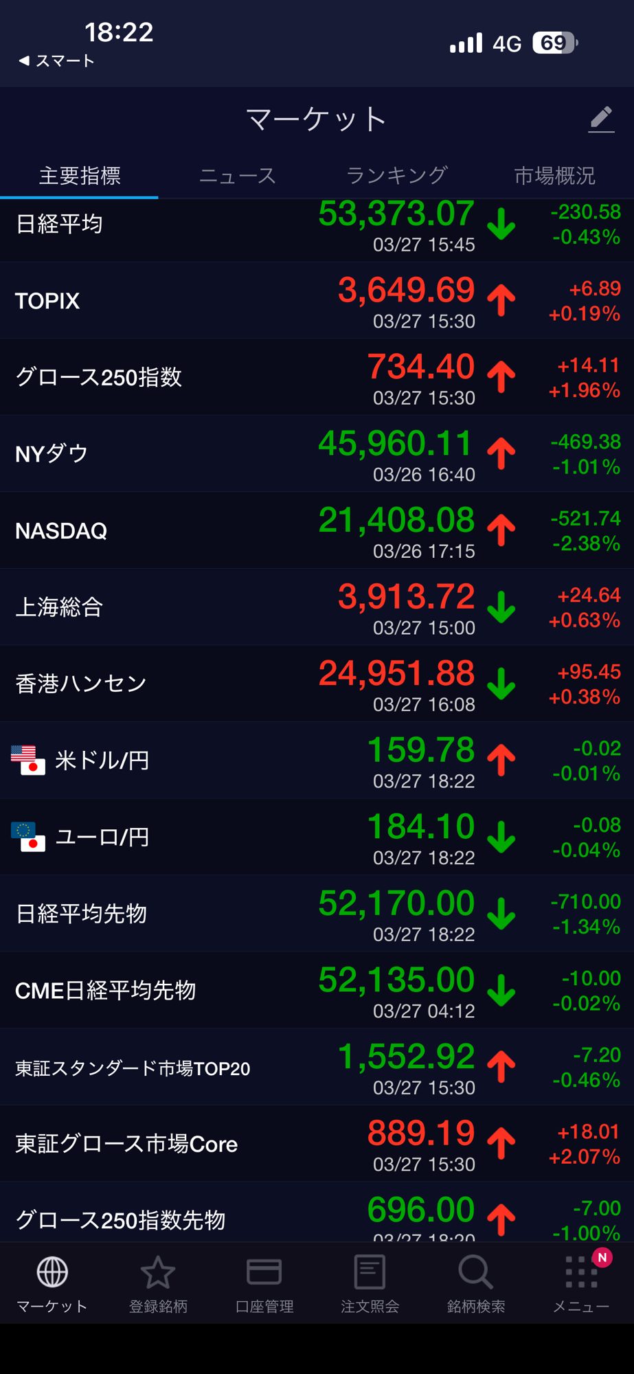 日経平均上げ、新興市場下げでした